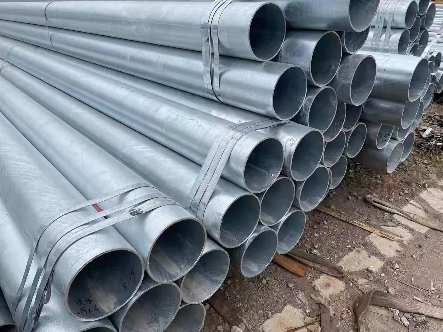 热镀锌管是使熔融金属与铁基体反应而产生合金层,从而使基体和镀层二者相结合。热镀锌钢管加工是先将钢管进行酸洗,为了去除钢管表面的氧化铁,酸洗后,通过氯化铵或氯化锌水溶液或氯化铵和氯化锌混合水溶液槽中进行清洗,然后送入热浸镀槽中。热镀锌具有镀层均匀,附着力强,使用寿命长等优点。热镀锌钢管基体与熔融的镀液发生复杂的物理、化学反应,形成耐腐蚀的结构紧密的锌一铁合金层。合金层与纯锌层、钢管基体融为一体,故其耐腐蚀能力强。